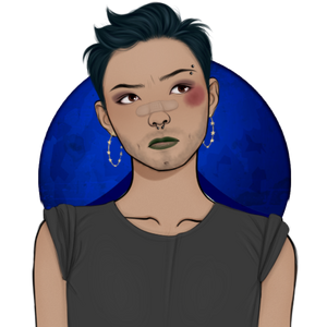 It feels like you've seen this woman everywhere since showing up at the carnival. She's a solid, strong butch, decorated with a large tool belt and her phone almost always in hand. Poppy is the groundskeeper, the engineer, and security. She's a little overworked, but approachable, and seems to anticipate disaster and stay two steps ahead of it.